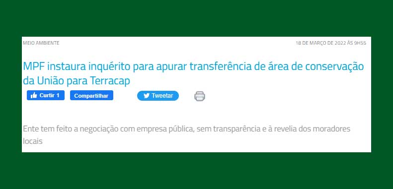 Conforme divulgado aqui, a Asproeste, semana passada, reuniu-se com o procurador federal Felipe Fritz Braga, que comprometeu-se a estudar o assunto, encaminhando-nos a sua posição esta semana. Esta manifestação saiu em forma da instauração de um inquérito para apurar a transferência de terras no Lago Oeste da União para a Terracap, divulgado hoje pelo MPF.